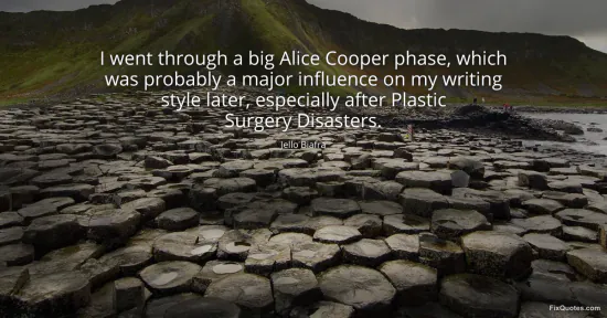 Biafra, Jello. (2026, January 15). I went through a big Alice Cooper phase, which was probably a major influence on my writing style later, especially after Plastic Surgery Disasters. FixQuotes. https://fixquotes.com/quotes/i-went-through-a-big-alice-cooper-phase-which-was-90610/