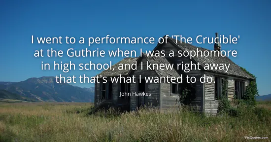 Hawkes, John. "I went to a performance of 'The Crucible' at the Guthrie when I was a sophomore in high school, and I knew right away that that's what I wanted to do." FixQuotes. January 16, 2026. https://fixquotes.com/quotes/i-went-to-a-performance-of-the-crucible-at-the-119352/.