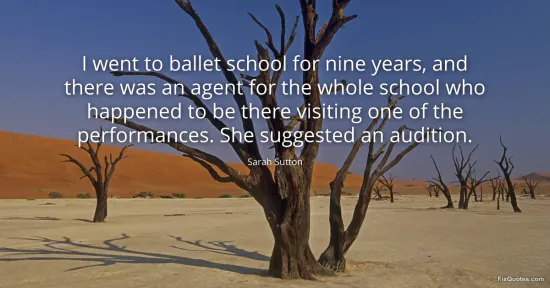Sutton, Sarah. (2026, January 16). I went to ballet school for nine years, and there was an agent for the whole school who happened to be there visiting one of the performances. She suggested an audition. FixQuotes. https://fixquotes.com/quotes/i-went-to-ballet-school-for-nine-years-and-there-131402/