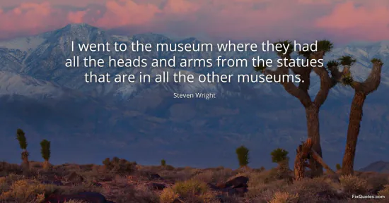 Wright, Steven. (2026, January 17). I went to the museum where they had all the heads and arms from the statues that are in all the other museums. FixQuotes. https://fixquotes.com/quotes/i-went-to-the-museum-where-they-had-all-the-heads-33441/