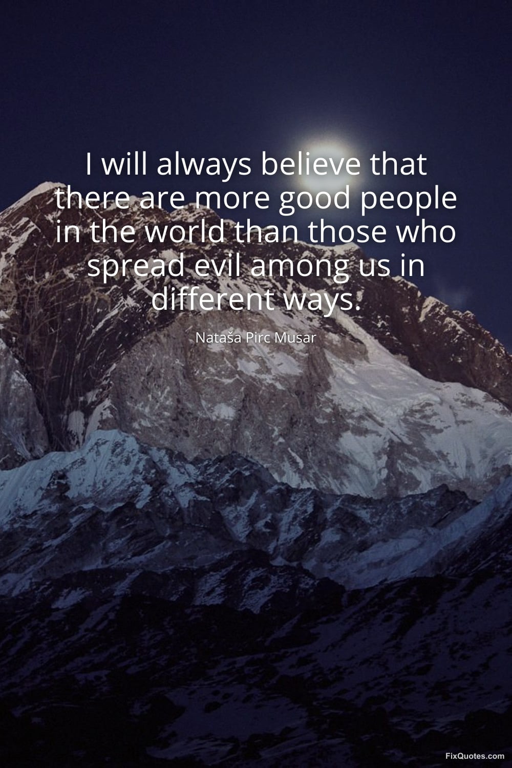 Musar, Nataša Pirc. "I will always believe that there are more good people in the world than those who spread evil among us in different ways." FixQuotes. February 18, 2026. https://fixquotes.com/quotes/i-will-always-believe-that-there-are-more-good-185634/.
