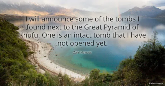"I will announce some of the tombs I found next to the Great Pyramid of Khufu. One is an intact tomb that I have not opened yet." FixQuotes, 16 Feb. 2026, https://fixquotes.com/quotes/i-will-announce-some-of-the-tombs-i-found-next-to-87048/. Accessed 27 Mar. 2026.