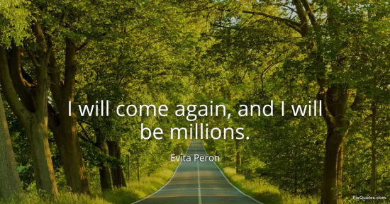 Peron, Evita. "I will come again, and I will be millions." FixQuotes. January 15, 2026. https://fixquotes.com/quotes/i-will-come-again-and-i-will-be-millions-70524/.