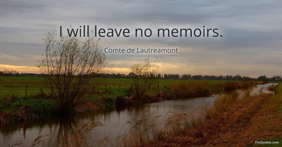 Lautreamont, Comte de. (2026, January 15). I will leave no memoirs. FixQuotes. https://fixquotes.com/quotes/i-will-leave-no-memoirs-161208/