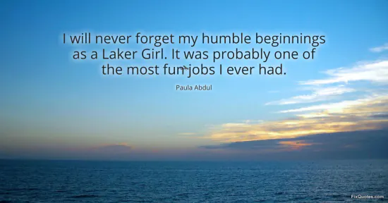 Abdul, Paula. (2026, January 16). I will never forget my humble beginnings as a Laker Girl. It was probably one of the most fun jobs I ever had. FixQuotes. https://fixquotes.com/quotes/i-will-never-forget-my-humble-beginnings-as-a-116833/