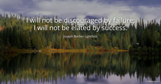Lightfoot, Joseph Barber. (2026, January 18). I will not be discouraged by failure; I will not be elated by success. FixQuotes. https://fixquotes.com/quotes/i-will-not-be-discouraged-by-failure-i-will-not-21714/