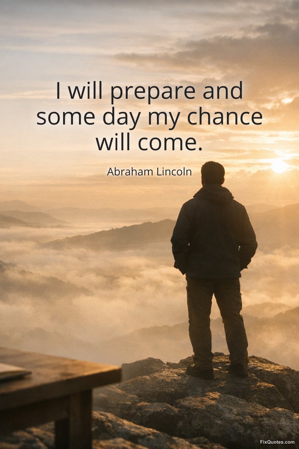 "I will prepare and some day my chance will come." FixQuotes, 12 Mar. 2026, https://fixquotes.com/quotes/i-will-prepare-and-some-day-my-chance-will-come-17743/. Accessed 15 Mar. 2026.