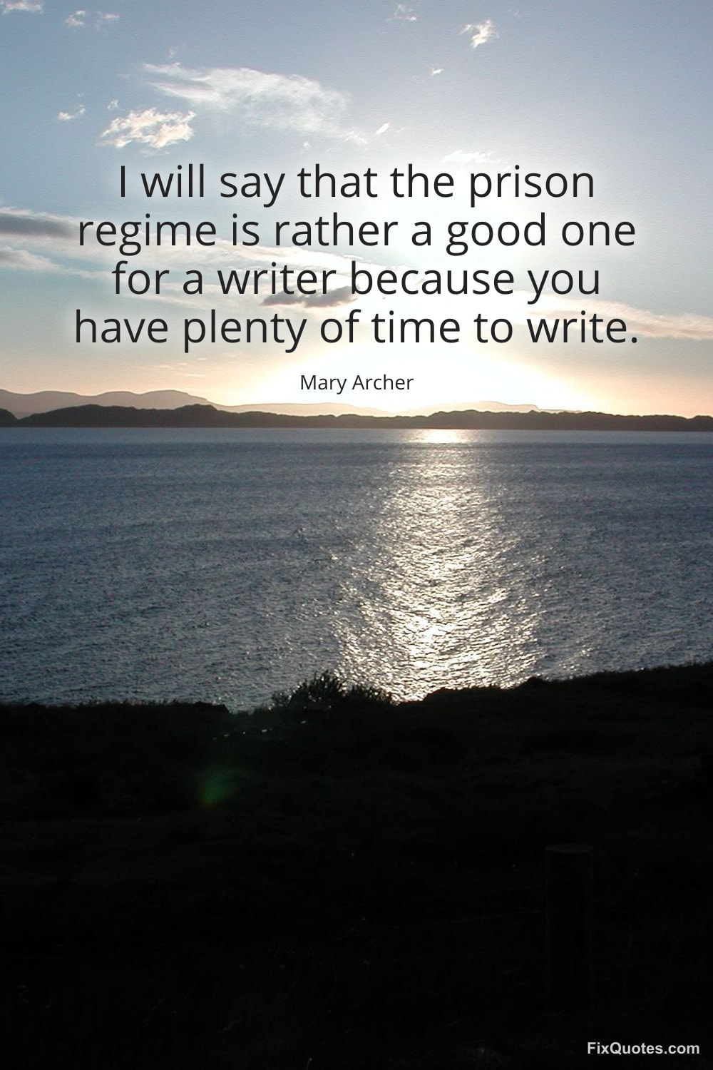 Archer, Mary. (2026, January 16). I will say that the prison regime is rather a good one for a writer because you have plenty of time to write. FixQuotes. https://fixquotes.com/quotes/i-will-say-that-the-prison-regime-is-rather-a-136556/