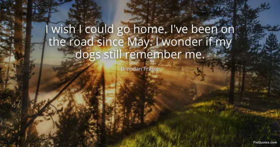 Fraser, Brendan. "I wish I could go home. I've been on the road since May. I wonder if my dogs still remember me." FixQuotes. January 17, 2026. https://fixquotes.com/quotes/i-wish-i-could-go-home-ive-been-on-the-road-since-48376/.