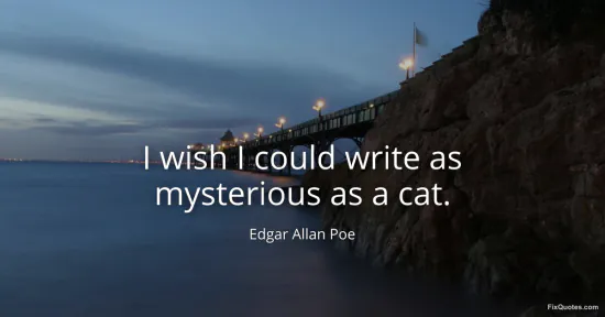 Poe, Edgar Allan. "I wish I could write as mysterious as a cat." FixQuotes. January 18, 2026. https://fixquotes.com/quotes/i-wish-i-could-write-as-mysterious-as-a-cat-13915/.