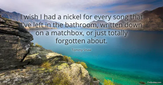 Shaw, Tommy. "I wish I had a nickel for every song that I've left in the bathroom, written down on a matchbox, or just totally forgotten about." FixQuotes. January 16, 2026. https://fixquotes.com/quotes/i-wish-i-had-a-nickel-for-every-song-that-ive-91348/.