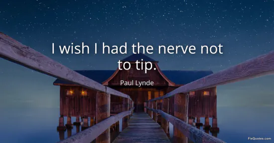 Lynde, Paul. (2026, January 16). I wish I had the nerve not to tip. FixQuotes. https://fixquotes.com/quotes/i-wish-i-had-the-nerve-not-to-tip-115642/