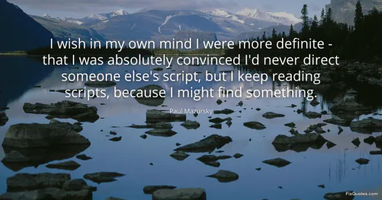 Mazursky, Paul. "I wish in my own mind I were more definite - that I was absolutely convinced I'd never direct someone else's script, but I keep reading scripts, because I might find something." FixQuotes. January 16, 2026. https://fixquotes.com/quotes/i-wish-in-my-own-mind-i-were-more-definite-that-109081/.