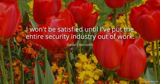 Bernstein, Daniel J. "I won't be satisfied until I've put the entire security industry out of work." FixQuotes. January 17, 2026. https://fixquotes.com/quotes/i-wont-be-satisfied-until-ive-put-the-entire-44976/.