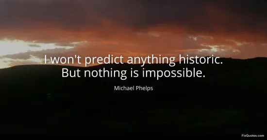 Phelps, Michael. (2026, January 16). I won't predict anything historic. But nothing is impossible. FixQuotes. https://fixquotes.com/quotes/i-wont-predict-anything-historic-but-nothing-is-121112/