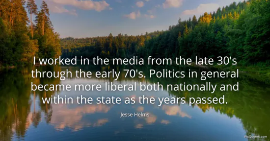 Helms, Jesse. (2026, January 17). I worked in the media from the late 30's through the early 70's. Politics in general became more liberal both nationally and within the state as the years passed. FixQuotes. https://fixquotes.com/quotes/i-worked-in-the-media-from-the-late-30s-through-53729/