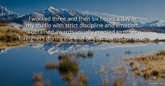Allen, Ralph. (2026, January 15). I worked three and then six hours a day in my studio with strict discipline and emotion. I obtained awards usually granted to other foreigners during the end-of-year admission tests. FixQuotes. https://fixquotes.com/quotes/i-worked-three-and-then-six-hours-a-day-in-my-162349/