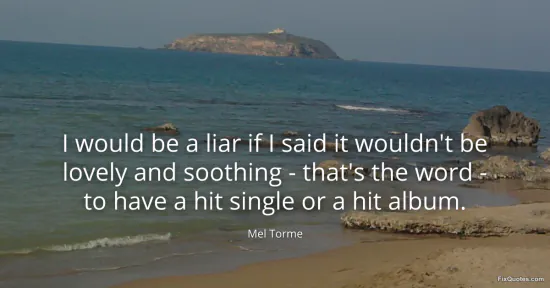 Torme, Mel. (2026, January 17). I would be a liar if I said it wouldn't be lovely and soothing - that's the word - to have a hit single or a hit album. FixQuotes. https://fixquotes.com/quotes/i-would-be-a-liar-if-i-said-it-wouldnt-be-lovely-76226/