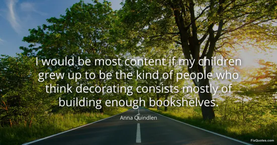 Quindlen, Anna. "I would be most content if my children grew up to be the kind of people who think decorating consists mostly of building enough bookshelves." FixQuotes. January 18, 2026. https://fixquotes.com/quotes/i-would-be-most-content-if-my-children-grew-up-to-1309/.