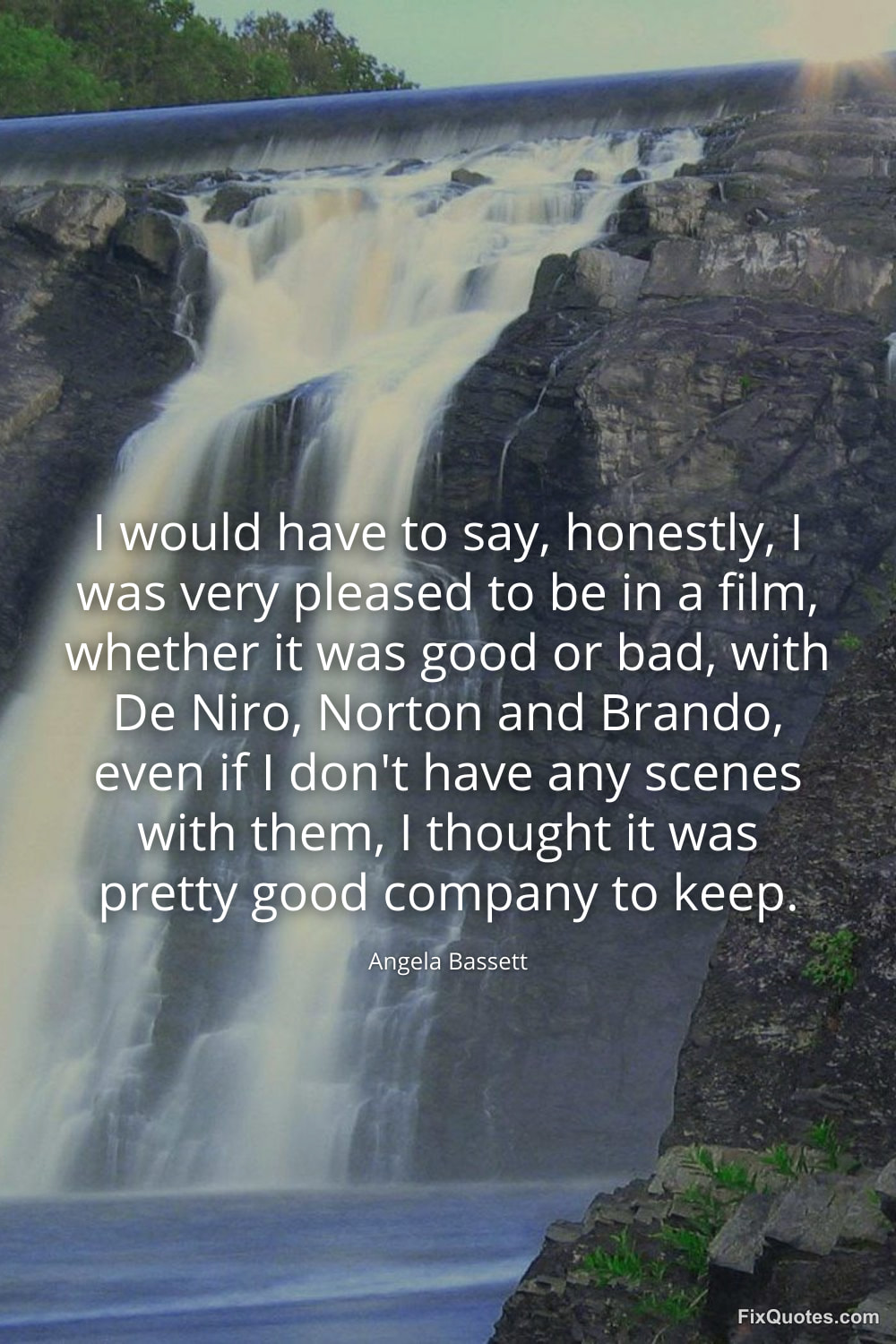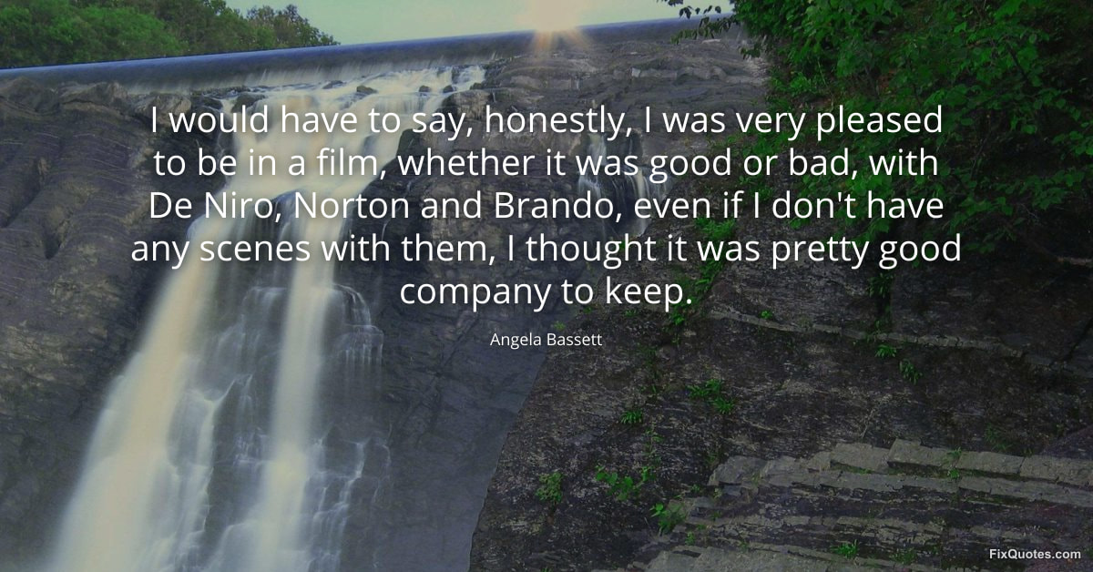 Bassett, Angela. (2026, February 16). I would have to say, honestly, I was very pleased to be in a film, whether it was good or bad, with De Niro, Norton and Brando, even if I don't have any scenes with them, I thought it was pretty good company to keep. FixQuotes. https://fixquotes.com/quotes/i-would-have-to-say-honestly-i-was-very-pleased-139730/