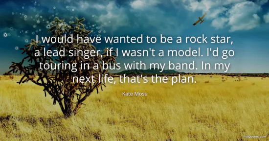 Moss, Kate. "I would have wanted to be a rock star, a lead singer, if I wasn't a model. I'd go touring in a bus with my band. In my next life, that's the plan." FixQuotes. January 15, 2026. https://fixquotes.com/quotes/i-would-have-wanted-to-be-a-rock-star-a-lead-157341/.