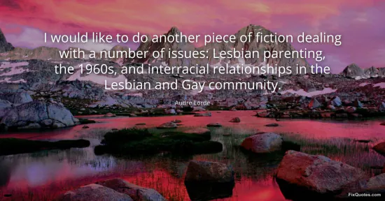 Lorde, Audre. (2026, February 16). I would like to do another piece of fiction dealing with a number of issues: Lesbian parenting, the 1960s, and interracial relationships in the Lesbian and Gay community. FixQuotes. https://fixquotes.com/quotes/i-would-like-to-do-another-piece-of-fiction-34474/