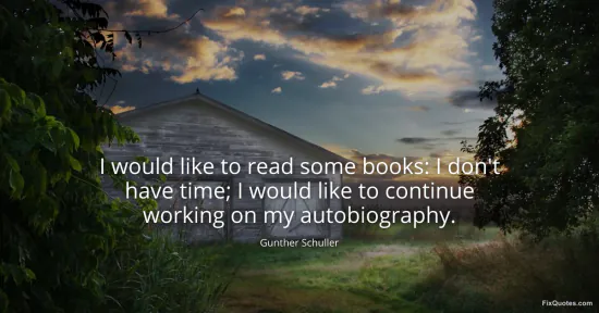 Schuller, Gunther. (2026, January 16). I would like to read some books: I don't have time; I would like to continue working on my autobiography. FixQuotes. https://fixquotes.com/quotes/i-would-like-to-read-some-books-i-dont-have-time-90310/