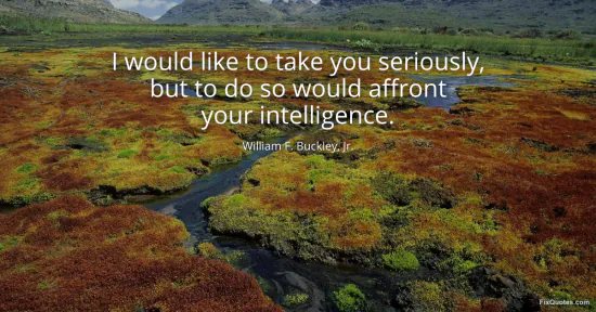 Jr., William F. Buckley,. (2026, January 15). I would like to take you seriously, but to do so would affront your intelligence. FixQuotes. https://fixquotes.com/quotes/i-would-like-to-take-you-seriously-but-to-do-so-2398/