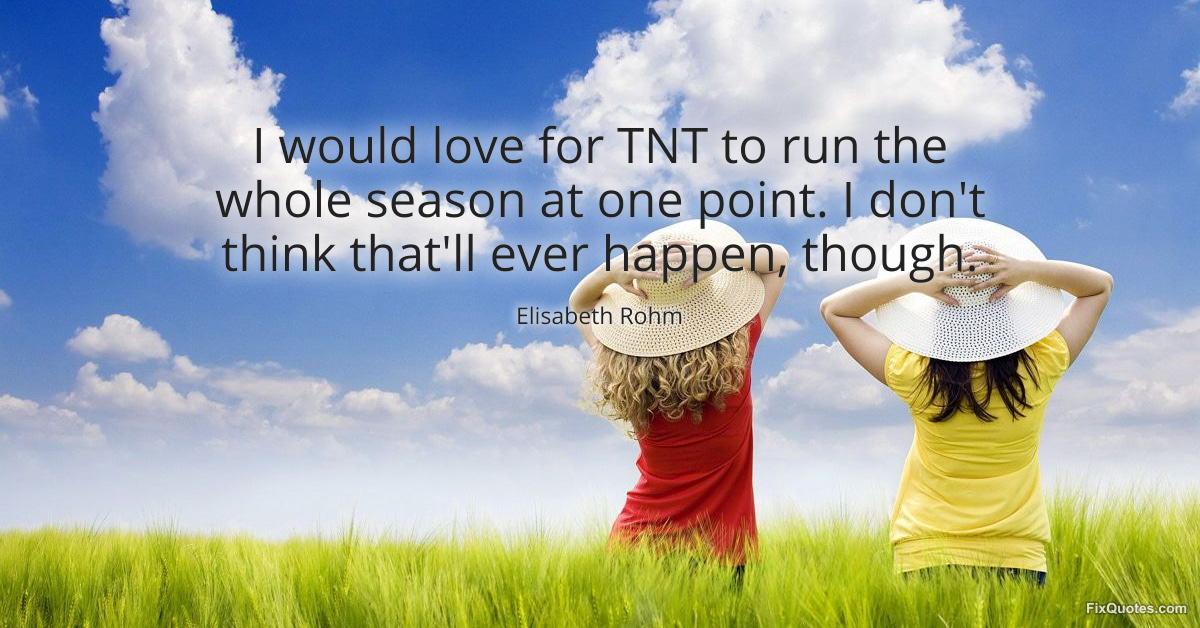 Rohm, Elisabeth. (2026, January 17). I would love for TNT to run the whole season at one point. I don't think that'll ever happen, though. FixQuotes. https://fixquotes.com/quotes/i-would-love-for-tnt-to-run-the-whole-season-at-73052/