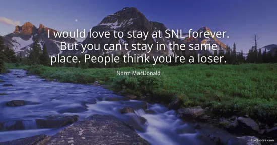 MacDonald, Norm. (2026, January 15). I would love to stay at SNL forever. But you can't stay in the same place. People think you're a loser. FixQuotes. https://fixquotes.com/quotes/i-would-love-to-stay-at-snl-forever-but-you-cant-159285/