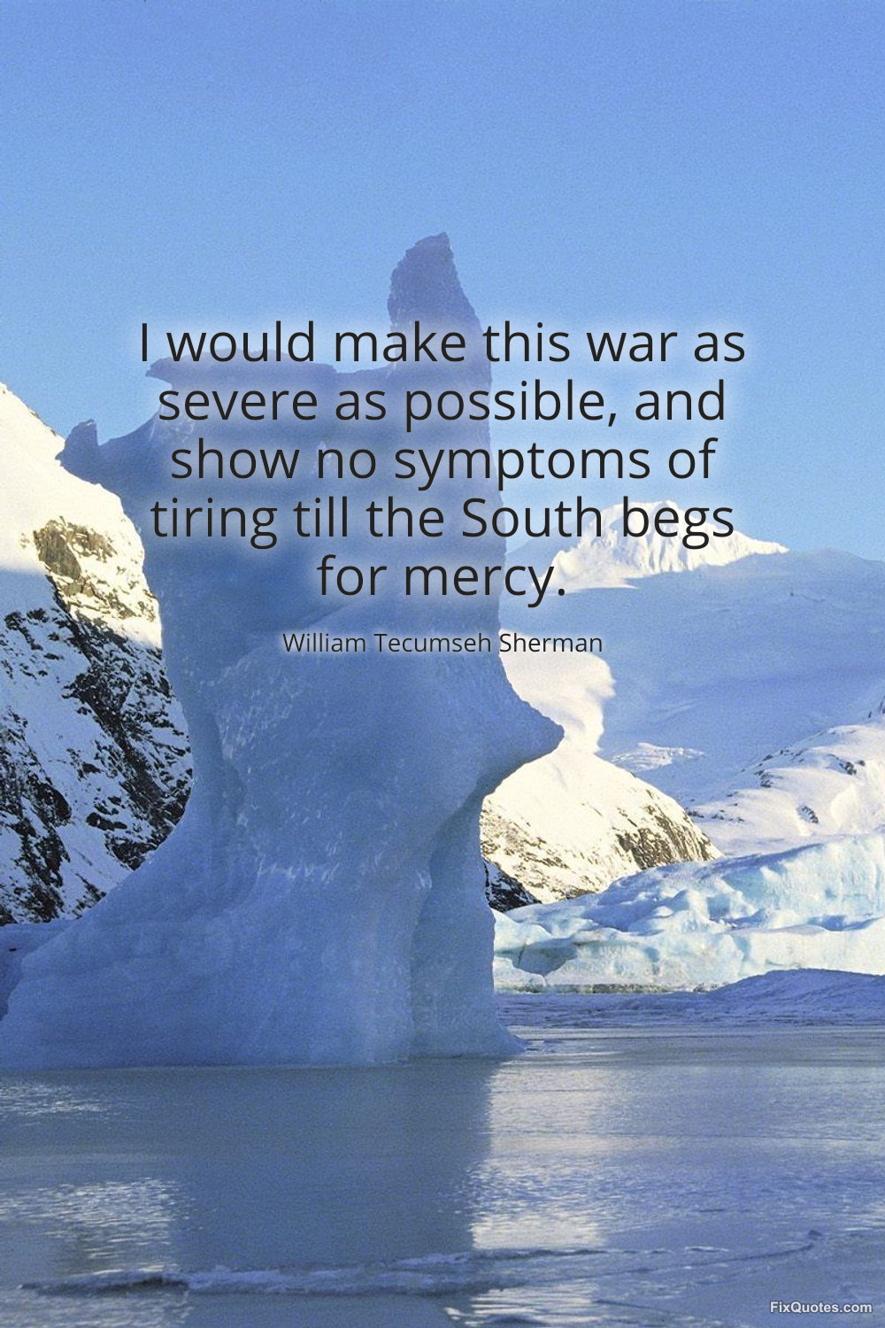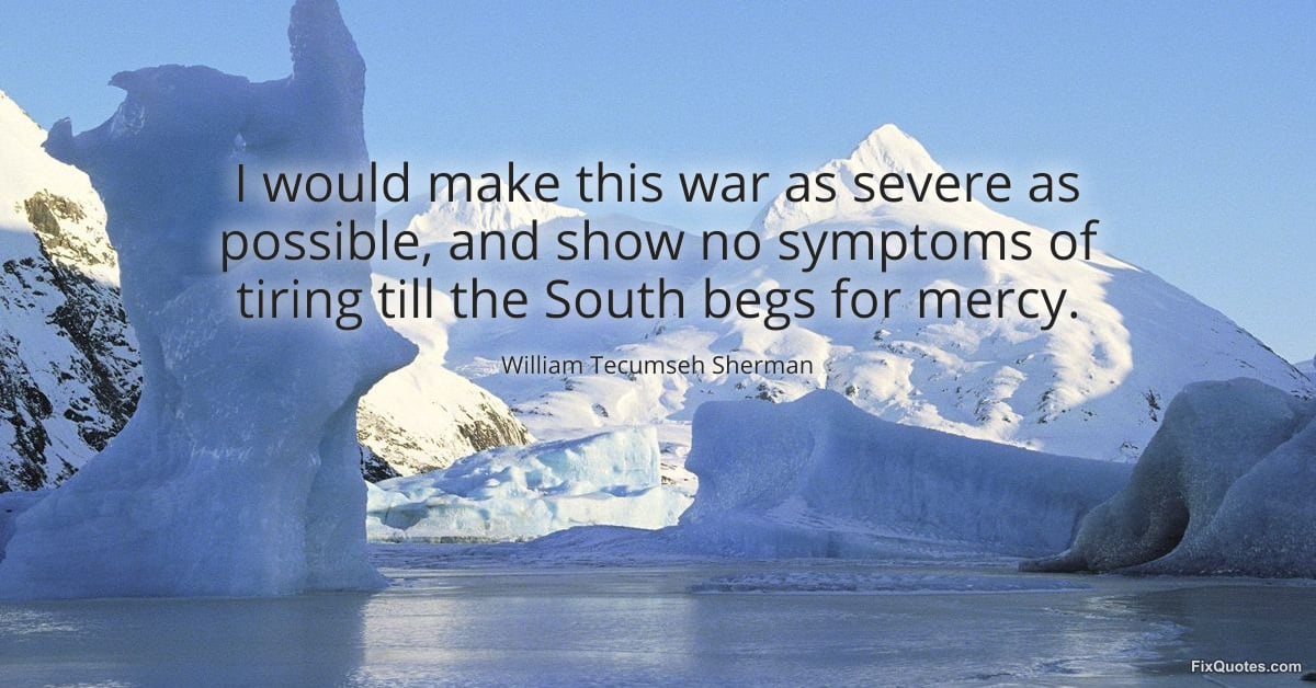 Sherman, William Tecumseh. (2026, March 2). I would make this war as severe as possible, and show no symptoms of tiring till the South begs for mercy. FixQuotes. https://fixquotes.com/quotes/i-would-make-this-war-as-severe-as-possible-and-6543/