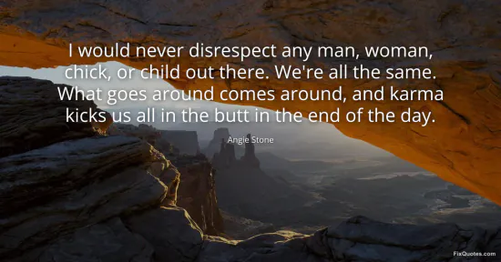 Stone, Angie. (2026, February 17). I would never disrespect any man, woman, chick, or child out there. We're all the same. What goes around comes around, and karma kicks us all in the butt in the end of the day. FixQuotes. https://fixquotes.com/quotes/i-would-never-disrespect-any-man-woman-chick-or-138142/