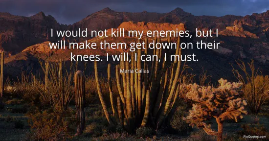 Callas, Maria. "I would not kill my enemies, but I will make them get down on their knees. I will, I can, I must." FixQuotes. January 16, 2026. https://fixquotes.com/quotes/i-would-not-kill-my-enemies-but-i-will-make-them-127707/.