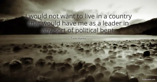 Hanks, Tom. (2026, January 16). I would not want to live in a country that would have me as a leader in any sort of political bent. FixQuotes. https://fixquotes.com/quotes/i-would-not-want-to-live-in-a-country-that-would-99422/