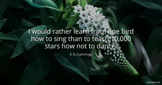 "I would rather learn from one bird how to sing than to teach 10,000 stars how not to dance"