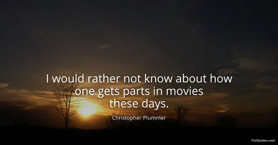 Plummer, Christopher. "I would rather not know about how one gets parts in movies these days." FixQuotes. January 16, 2026. https://fixquotes.com/quotes/i-would-rather-not-know-about-how-one-gets-parts-101947/.