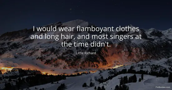 Richard, Little. "I would wear flamboyant clothes and long hair, and most singers at the time didn't." FixQuotes. January 16, 2026. https://fixquotes.com/quotes/i-would-wear-flamboyant-clothes-and-long-hair-and-123912/.