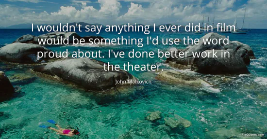 Malkovich, John. "I wouldn't say anything I ever did in film would be something I'd use the word proud about. I've done better work in the theater." FixQuotes. January 17, 2026. https://fixquotes.com/quotes/i-wouldnt-say-anything-i-ever-did-in-film-would-59081/.