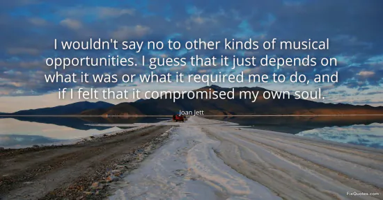 Jett, Joan. (2026, January 17). I wouldn't say no to other kinds of musical opportunities. I guess that it just depends on what it was or what it required me to do, and if I felt that it compromised my own soul. FixQuotes. https://fixquotes.com/quotes/i-wouldnt-say-no-to-other-kinds-of-musical-70594/