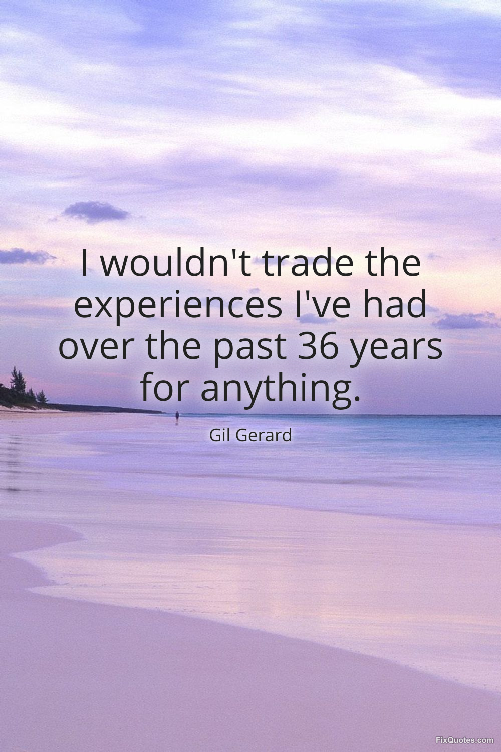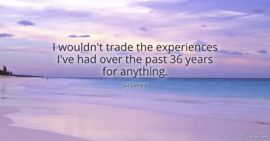 Gerard, Gil. (2026, January 15). I wouldn't trade the experiences I've had over the past 36 years for anything. FixQuotes. https://fixquotes.com/quotes/i-wouldnt-trade-the-experiences-ive-had-over-the-60123/