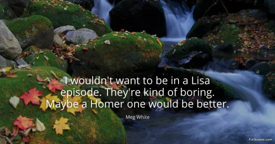 White, Meg. "I wouldn't want to be in a Lisa episode. They're kind of boring. Maybe a Homer one would be better." FixQuotes. January 16, 2026. https://fixquotes.com/quotes/i-wouldnt-want-to-be-in-a-lisa-episode-theyre-93429/.