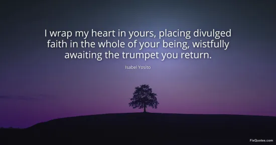 Yosito, Isabel. (2026, January 16). I wrap my heart in yours, placing divulged faith in the whole of your being, wistfully awaiting the trumpet you return. FixQuotes. https://fixquotes.com/quotes/i-wrap-my-heart-in-yours-placing-divulged-faith-135614/
