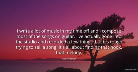 Patterson, Scott. "I write a lot of music in my time off and I compose most of the songs on guitar. I've actually gone into the studio and recorded a few things, but it's tough trying to sell a song. It's all about finding that hook, that melody." FixQuotes. January 16, 2026. https://fixquotes.com/quotes/i-write-a-lot-of-music-in-my-time-off-and-i-107048/.