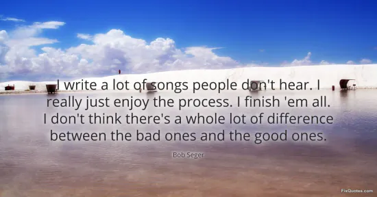 Seger, Bob. (2026, January 17). I write a lot of songs people don't hear. I really just enjoy the process. I finish 'em all. I don't think there's a whole lot of difference between the bad ones and the good ones. FixQuotes. https://fixquotes.com/quotes/i-write-a-lot-of-songs-people-dont-hear-i-really-43561/