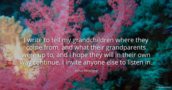 Hertzberg, Arthur. "I write to tell my grandchildren where they come from, and what their grandparents were up to, and I hope they will in their own way continue. I invite anyone else to listen in." FixQuotes. January 17, 2026. https://fixquotes.com/quotes/i-write-to-tell-my-grandchildren-where-they-come-41423/.