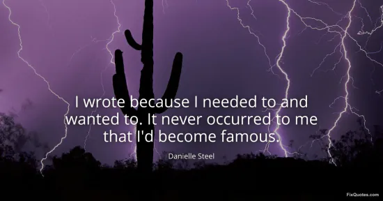 Steel, Danielle. (2026, January 16). I wrote because I needed to and wanted to. It never occurred to me that I'd become famous. FixQuotes. https://fixquotes.com/quotes/i-wrote-because-i-needed-to-and-wanted-to-it-110922/
