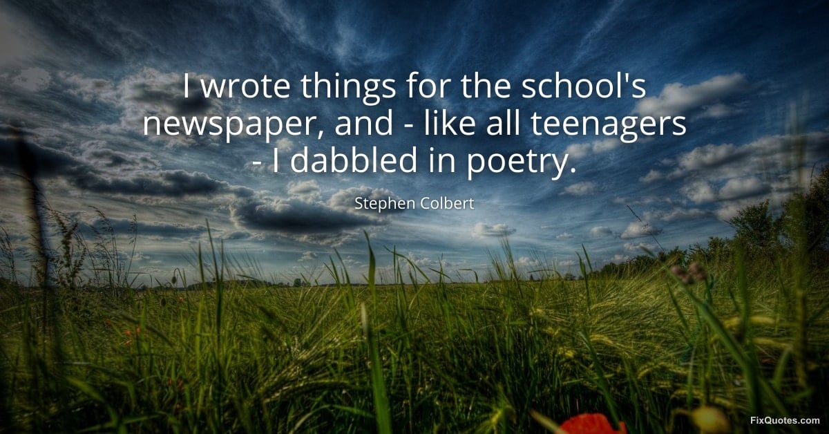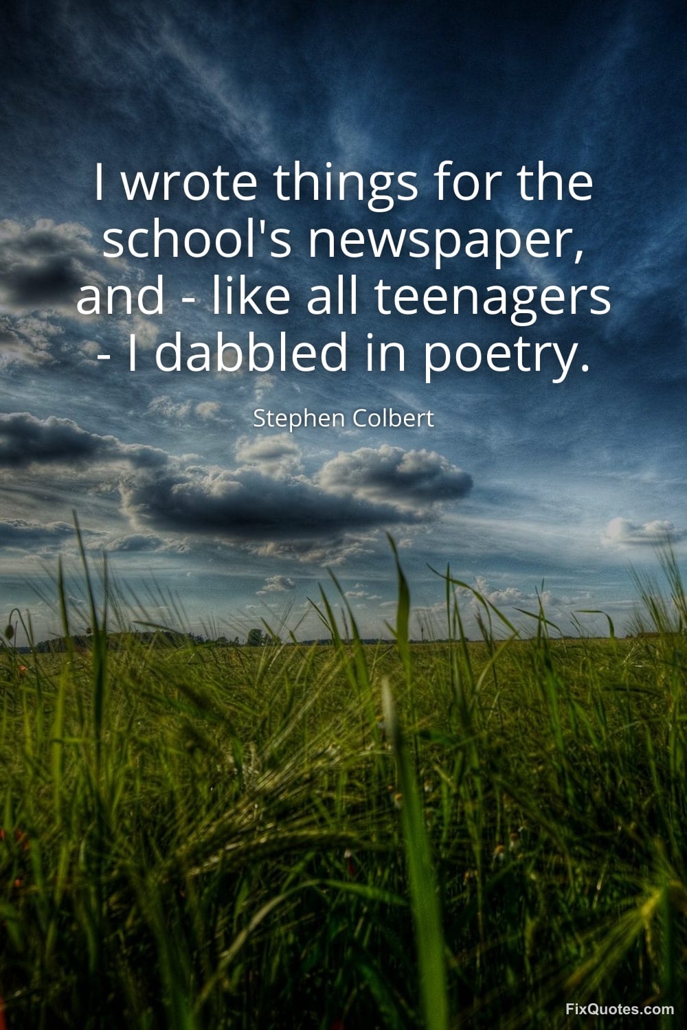 Colbert, Stephen. (2026, January 15). I wrote things for the school's newspaper, and - like all teenagers - I dabbled in poetry. FixQuotes. https://fixquotes.com/quotes/i-wrote-things-for-the-schools-newspaper-and-97533/