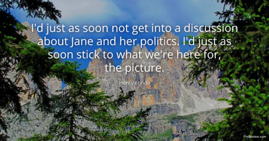 Fonda, Henry. "I'd just as soon not get into a discussion about Jane and her politics. I'd just as soon stick to what we're here for, the picture." FixQuotes. January 17, 2026. https://fixquotes.com/quotes/id-just-as-soon-not-get-into-a-discussion-about-67981/.