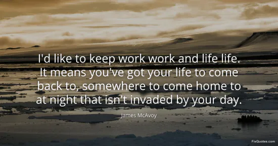 McAvoy, James. "I'd like to keep work work and life life. It means you've got your life to come back to, somewhere to come home to at night that isn't invaded by your day." FixQuotes. January 15, 2026. https://fixquotes.com/quotes/id-like-to-keep-work-work-and-life-life-it-means-151719/.