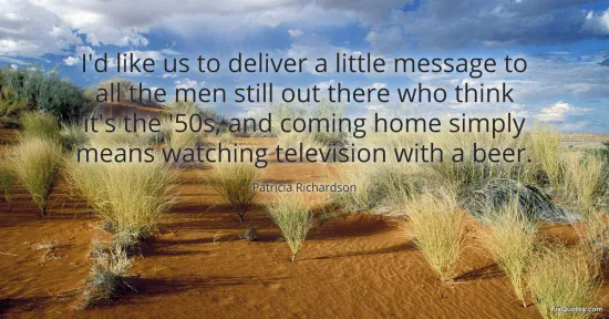 Richardson, Patricia. "I'd like us to deliver a little message to all the men still out there who think it's the '50s, and coming home simply means watching television with a beer." FixQuotes. January 17, 2026. https://fixquotes.com/quotes/id-like-us-to-deliver-a-little-message-to-all-the-70817/.